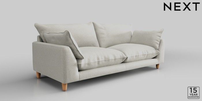 7.2.10 Noa Deep Relaxed Sit 3 Seater Sofa Plush Chenille Oyster High Leg - Light | Made Click here to use our website with more accessibility support, for example screen readers