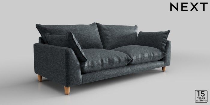 7.2.10 Noa Deep Relaxed Sit 3 Seater Sofa Plush Chenille Slate Blue High Leg - Light | Made Click here to use our website with more accessibility support, for example screen readers