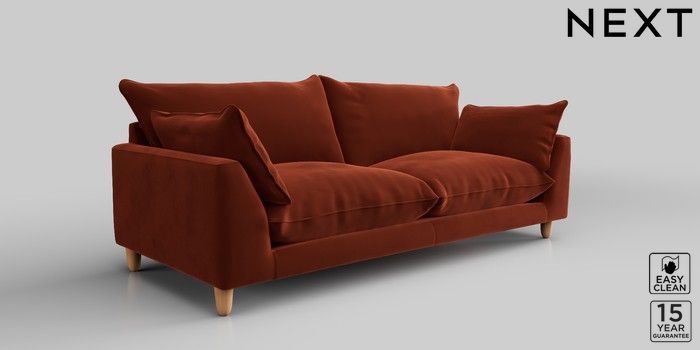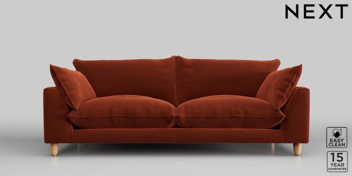 7.2.10 Noa Deep Relaxed Sit 3 Seater Sofa Plush Velvet Easy Clean Ginger Orange High Leg - Light | Made Click here to use our website with more accessibility support, for example screen readers