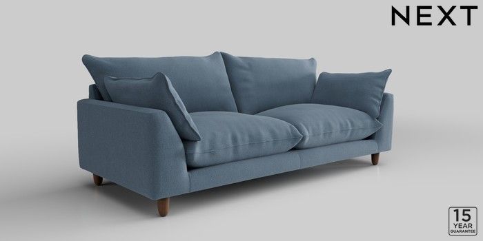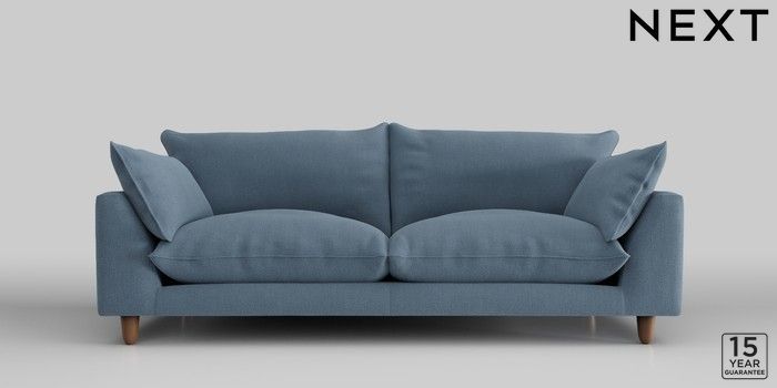 7.2.10 Noa Deep Relaxed Sit 3 Seater Sofa Relaxed Linen Look Mid Blue High Leg - Mid | Made Click here to use our website with more accessibility support, for example screen readers