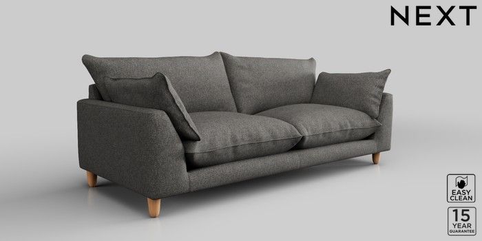 7.2.10 Noa Deep Relaxed Sit 3 Seater Sofa Tweedy Blend Easy Clean Dark Grey High Leg - Light | Made Click here to use our website with more accessibility support, for example screen readers