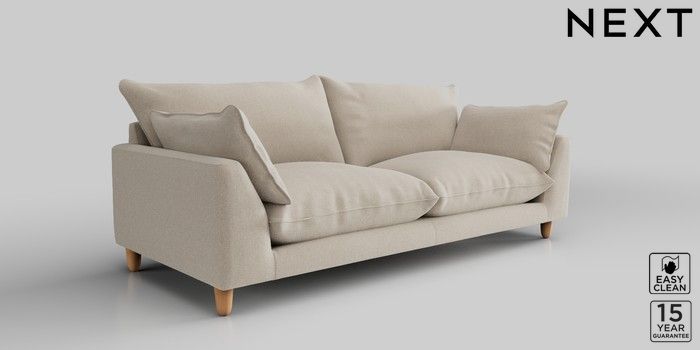 7.2.10 Noa Deep Relaxed Sit 3 Seater Sofa Tweedy Blend Easy Clean Oyster High Leg - Light | Made Click here to use our website with more accessibility support, for example screen readers
