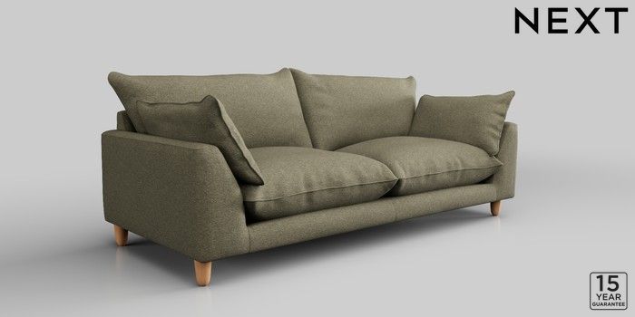 7.2.10 Noa Deep Relaxed Sit 3 Seater Sofa Tweedy Chenille Mid Moss Green High Leg - Light | Made Click here to use our website with more accessibility support, for example screen readers