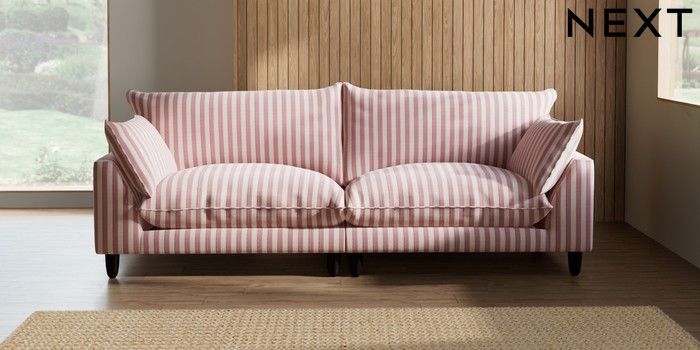 7.2.10 Noa Deep Relaxed Sit 4 Seater Sofa Bold Chenille Stripe Dark Pink High Leg - Dark | Made Click here to use our website with more accessibility support, for example screen readers