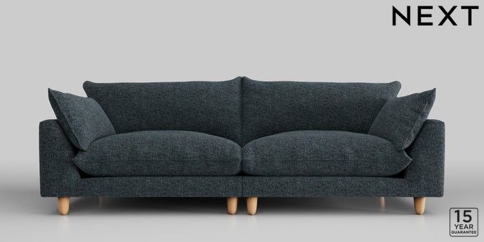 7.2.10 Noa Deep Relaxed Sit 4 Seater Sofa Chunky Chenille Dark Navy Blue High Leg - Light | Made Click here to use our website with more accessibility support, for example screen readers