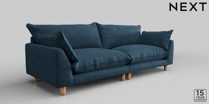 7.2.10 Noa Deep Relaxed Sit 4 Seater Sofa Cotswold Chenille Dark Blue High Leg - Light | Made Click here to use our website with more accessibility support, for example screen readers