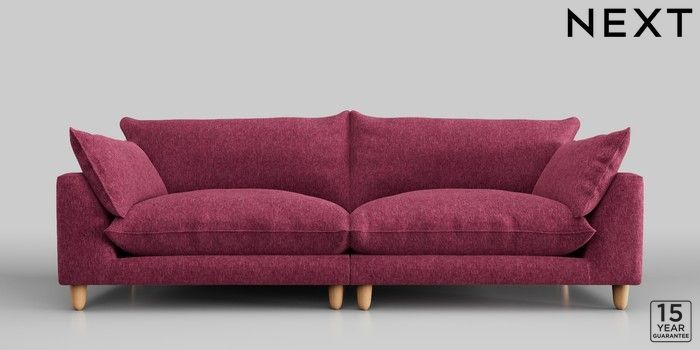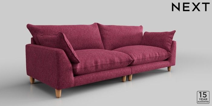 7.2.10 Noa Deep Relaxed Sit 4 Seater Sofa Cotswold Chenille Dark Raspberry Pink High Leg - Light | Made Click here to use our website with more accessibility support, for example screen readers