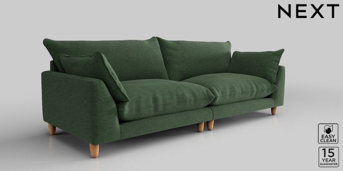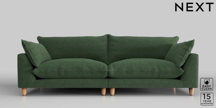 7.2.10 Noa Deep Relaxed Sit 4 Seater Sofa Fine Chenille Easy Clean Mid Khaki Green High Leg - Light | Made Click here to use our website with more accessibility support, for example screen readers