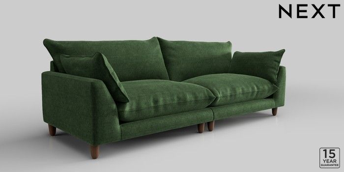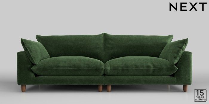 7.2.10 Noa Deep Relaxed Sit 4 Seater Sofa Luxe Chenille Dark Green High Leg - Mid | Made Click here to use our website with more accessibility support, for example screen readers