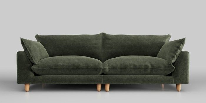 7.2.10 Noa Deep Relaxed Sit 4 Seater Sofa Luxe Chenille Mid Green High Leg - Light | Made Click here to use our website with more accessibility support, for example screen readers