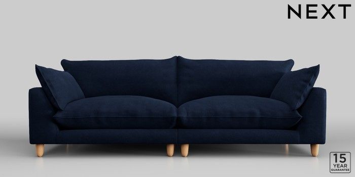7.2.10 Noa Deep Relaxed Sit 4 Seater Sofa Luxe Chenille Navy Blue High Leg - Light | Made Click here to use our website with more accessibility support, for example screen readers
