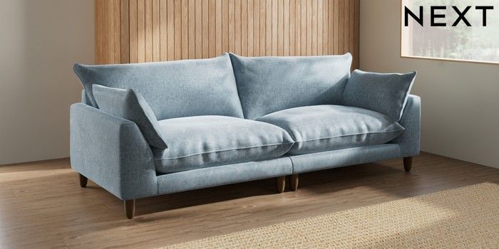 7.2.10 Noa Deep Relaxed Sit 4 Seater Sofa Plush Chenille Light Blue High Leg - Mid | Made Click here to use our website with more accessibility support, for example screen readers