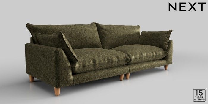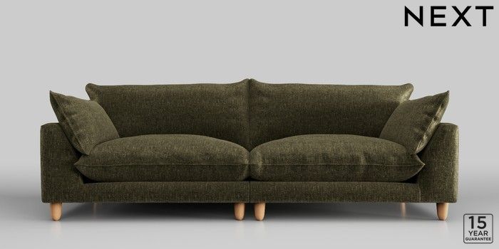 7.2.10 Noa Deep Relaxed Sit 4 Seater Sofa Plush Chenille Moss Green High Leg - Light | Made Click here to use our website with more accessibility support, for example screen readers