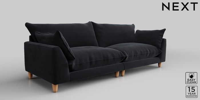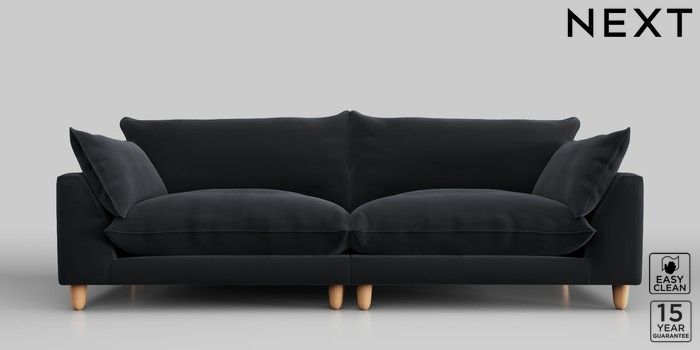 7.2.10 Noa Deep Relaxed Sit 4 Seater Sofa Plush Velvet Easy Clean Charcoal Grey High Leg - Light | Made Click here to use our website with more accessibility support, for example screen readers