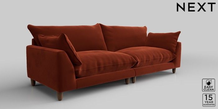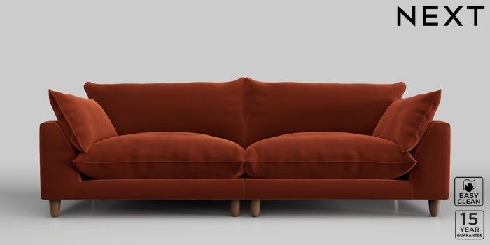 7.2.10 Noa Deep Relaxed Sit 4 Seater Sofa Plush Velvet Easy Clean Ginger Orange High Leg - Mid | Made Click here to use our website with more accessibility support, for example screen readers