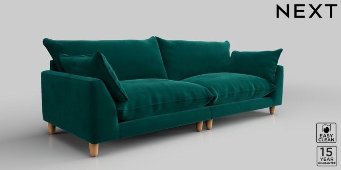 7.2.10 Noa Deep Relaxed Sit 4 Seater Sofa Plush Velvet Easy Clean Juniper Green High Leg - Light | Made Click here to use our website with more accessibility support, for example screen readers