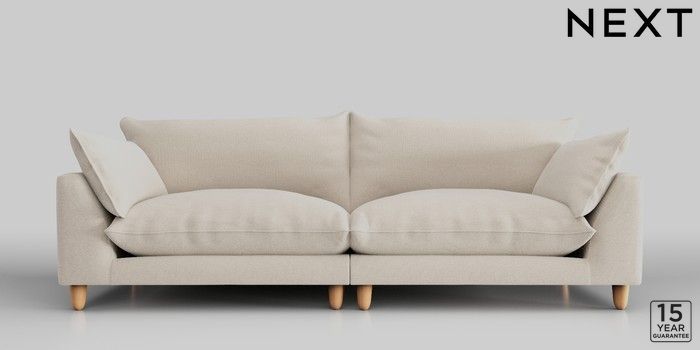 7.2.10 Noa Deep Relaxed Sit 4 Seater Sofa Studio Chenille Oyster High Leg - Light | Made Click here to use our website with more accessibility support, for example screen readers