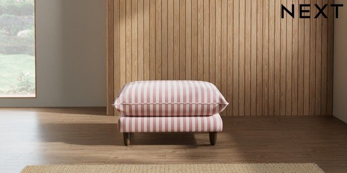 7.2.10 Noa Deep Relaxed Sit Footstool Bold Chenille Stripe Dark Pink High Leg - Mid | Made Click here to use our website with more accessibility support, for example screen readers