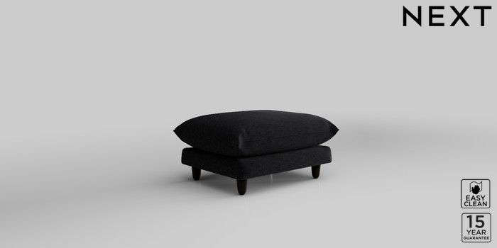 7.2.10 Noa Deep Relaxed Sit Footstool Fine Chenille Easy Clean Black High Leg - Dark | Made Click here to use our website with more accessibility support, for example screen readers