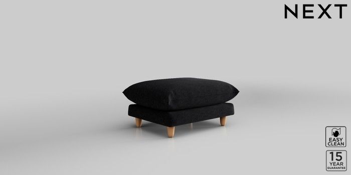 7.2.10 Noa Deep Relaxed Sit Footstool Fine Chenille Easy Clean Black High Leg - Light | Made Click here to use our website with more accessibility support, for example screen readers