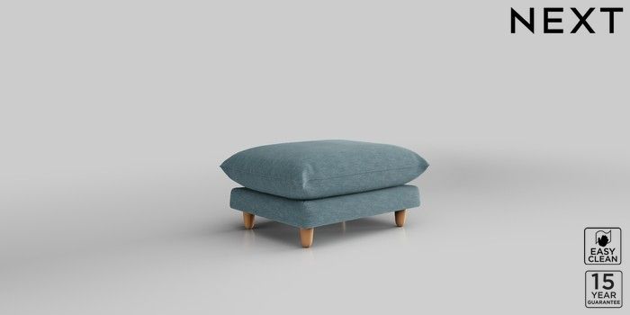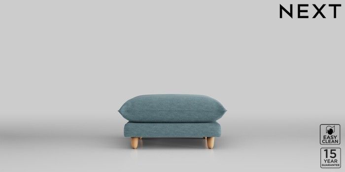 7.2.10 Noa Deep Relaxed Sit Footstool Fine Chenille Easy Clean Mid Blue High Leg - Light | Made Click here to use our website with more accessibility support, for example screen readers