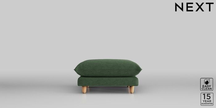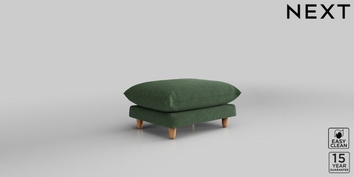 7.2.10 Noa Deep Relaxed Sit Footstool Fine Chenille Easy Clean Mid Khaki Green High Leg - Light | Made Click here to use our website with more accessibility support, for example screen readers