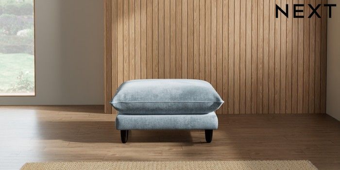 7.2.10 Noa Deep Relaxed Sit Footstool Plush Chenille Light Blue High Leg - Dark | Made Click here to use our website with more accessibility support, for example screen readers
