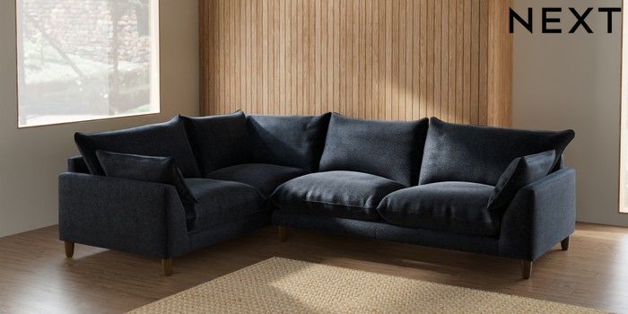 7.2.10 Noa Deep Relaxed Sit Large Corner Sofa - Left Hand Boucle Chenille Dark Slate Blue High Leg - Mid | Made Click here to use our website with more accessibility support, for example screen readers