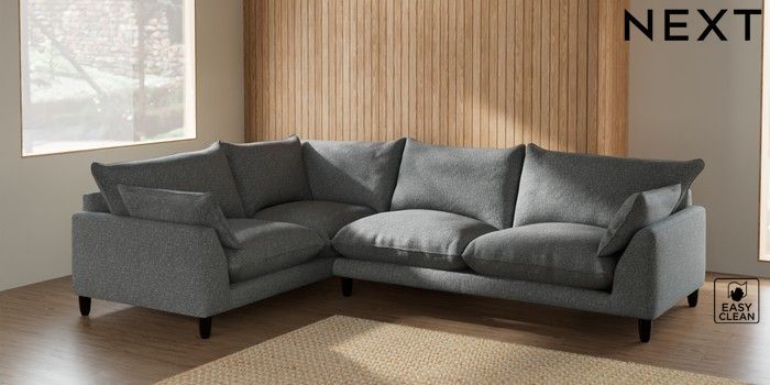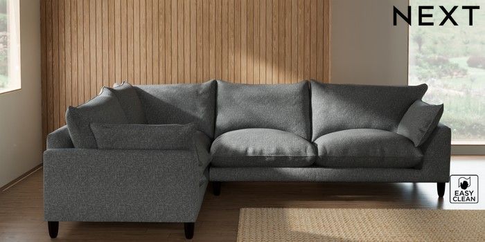 7.2.10 Noa Deep Relaxed Sit Large Corner Sofa - Left Hand Chunky Boucle Easy Clean Mid Grey High Leg - Dark | Made Click here to use our website with more accessibility support, for example screen readers