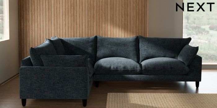 7.2.10 Noa Deep Relaxed Sit Large Corner Sofa - Left Hand Chunky Chenille Dark Navy Blue High Leg - Dark | Made Click here to use our website with more accessibility support, for example screen readers