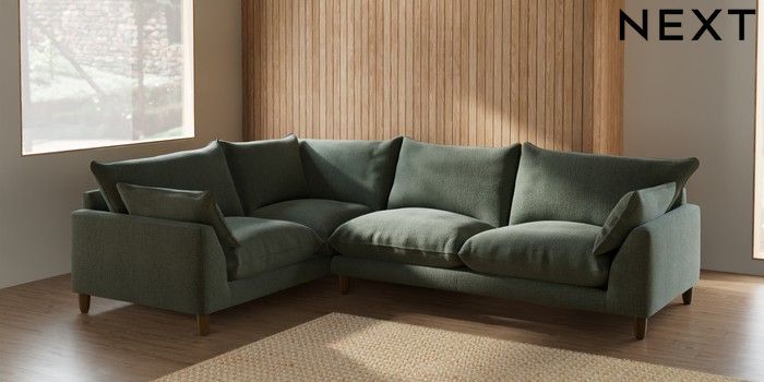 7.2.10 Noa Deep Relaxed Sit Large Corner Sofa - Left Hand Chunky Texture Mid Forest Green High Leg - Mid | Made Click here to use our website with more accessibility support, for example screen readers