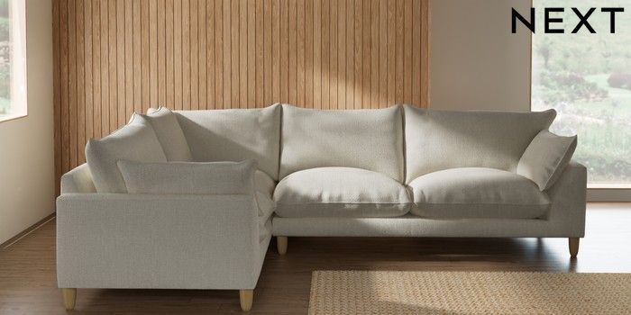7.2.10 Noa Deep Relaxed Sit Large Corner Sofa - Left Hand Chunky Texture Oyster High Leg - Light | Made Click here to use our website with more accessibility support, for example screen readers