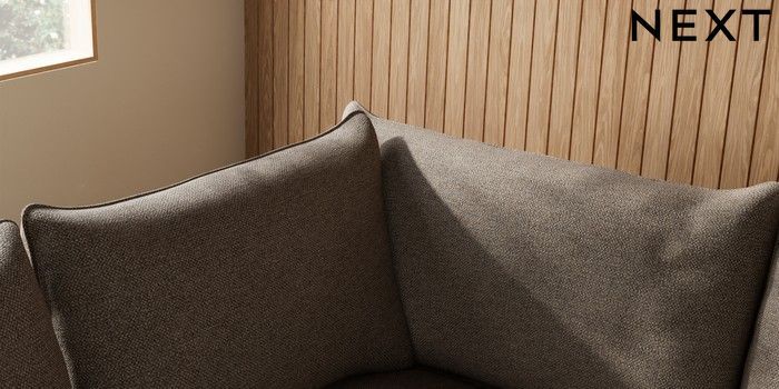 7.2.10 Noa Deep Relaxed Sit Large Corner Sofa - Left Hand Chunky Weave Dark Natural High Leg - Mid | Made Click here to use our website with more accessibility support, for example screen readers