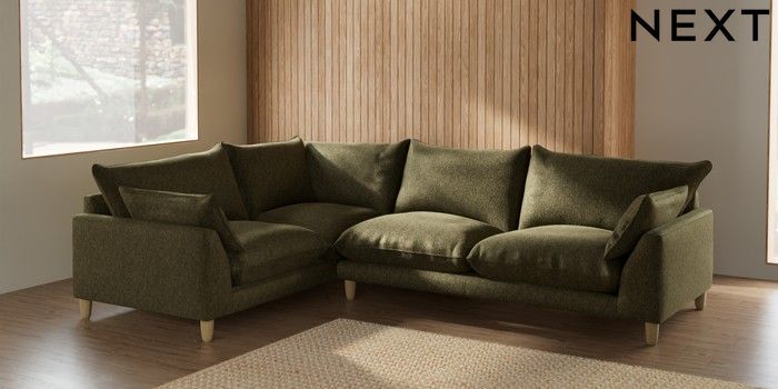 7.2.10 Noa Deep Relaxed Sit Large Corner Sofa - Left Hand Cotswold Chenille Dark Green High Leg - Light | Made Click here to use our website with more accessibility support, for example screen readers