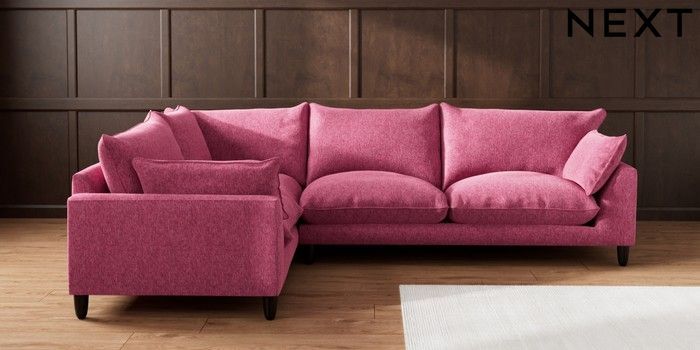 7.2.10 Noa Deep Relaxed Sit Large Corner Sofa - Left Hand Cotswold Chenille Dark Raspberry Pink High Leg - Dark | Made Click here to use our website with more accessibility support, for example screen readers