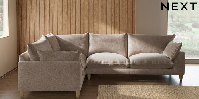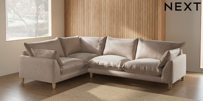 7.2.10 Noa Deep Relaxed Sit Large Corner Sofa - Left Hand Cotswold Chenille Light Natural High Leg - Light | Made Click here to use our website with more accessibility support, for example screen readers