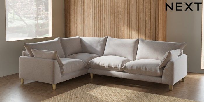 7.2.10 Noa Deep Relaxed Sit Large Corner Sofa - Left Hand Cotswold Chenille Oyster High Leg - Light | Made Click here to use our website with more accessibility support, for example screen readers