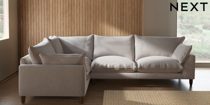 7.2.10 Noa Deep Relaxed Sit Large Corner Sofa - Left Hand Cotswold Chenille Oyster High Leg - Mid | Made Click here to use our website with more accessibility support, for example screen readers