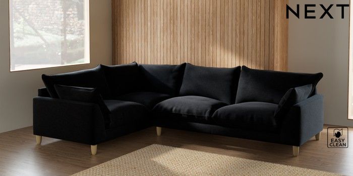 7.2.10 Noa Deep Relaxed Sit Large Corner Sofa - Left Hand Fine Chenille Easy Clean Black High Leg - Light | Made Click here to use our website with more accessibility support, for example screen readers