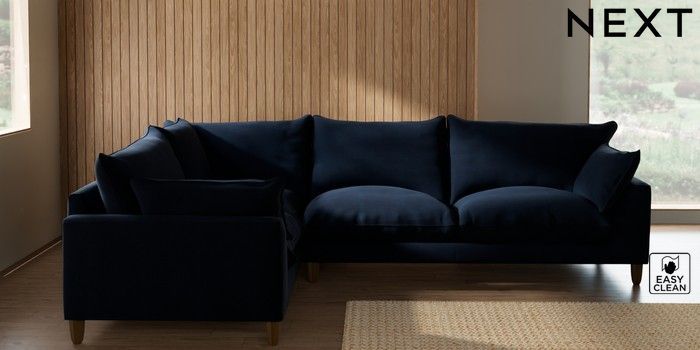 7.2.10 Noa Deep Relaxed Sit Large Corner Sofa - Left Hand Fine Chenille Easy Clean Dark Navy Blue High Leg - Mid | Made Click here to use our website with more accessibility support, for example screen readers