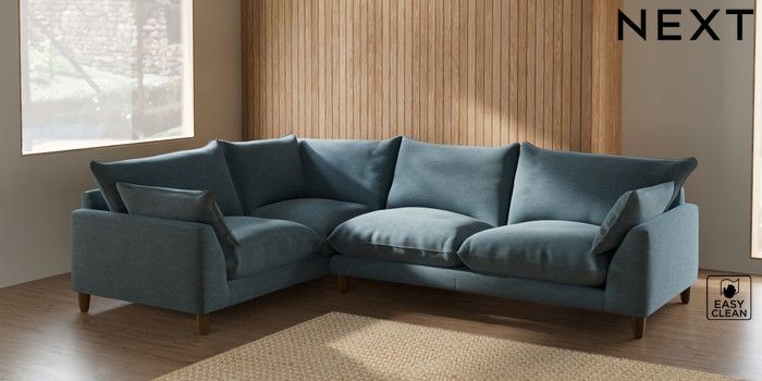 7.2.10 Noa Deep Relaxed Sit Large Corner Sofa - Left Hand Fine Chenille Easy Clean Mid Blue High Leg - Mid | Made Click here to use our website with more accessibility support, for example screen readers