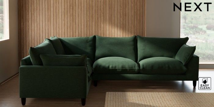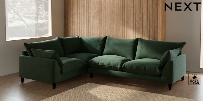 7.2.10 Noa Deep Relaxed Sit Large Corner Sofa - Left Hand Fine Chenille Easy Clean Mid Khaki Green High Leg - Dark | Made Click here to use our website with more accessibility support, for example screen readers