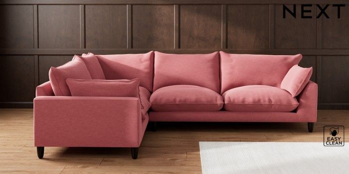 7.2.10 Noa Deep Relaxed Sit Large Corner Sofa - Left Hand Fine Chenille Easy Clean Mid Pink High Leg - Dark | Made Click here to use our website with more accessibility support, for example screen readers