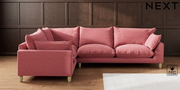 7.2.10 Noa Deep Relaxed Sit Large Corner Sofa - Left Hand Fine Chenille Easy Clean Mid Pink High Leg - Light | Made Click here to use our website with more accessibility support, for example screen readers