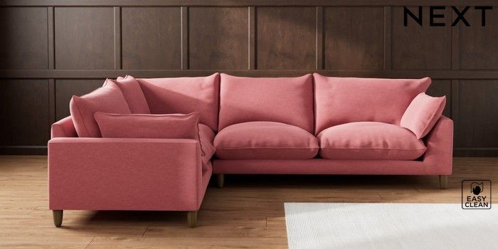 7.2.10 Noa Deep Relaxed Sit Large Corner Sofa - Left Hand Fine Chenille Easy Clean Mid Pink High Leg - Mid | Made Click here to use our website with more accessibility support, for example screen readers