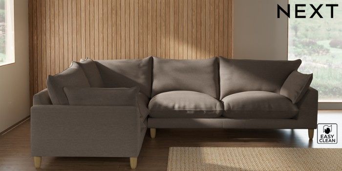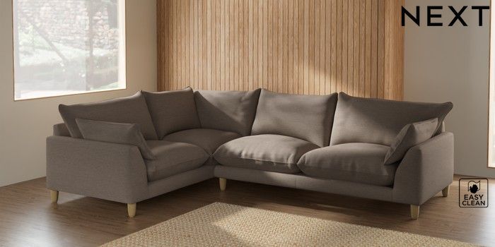 7.2.10 Noa Deep Relaxed Sit Large Corner Sofa - Left Hand Fine Chenille Easy Clean Mid Taupe Brown High Leg - Light | Made Click here to use our website with more accessibility support, for example screen readers