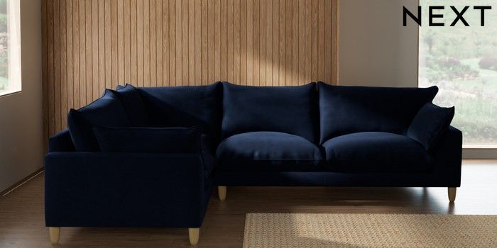 7.2.10 Noa Deep Relaxed Sit Large Corner Sofa - Left Hand Luxe Chenille Navy Blue High Leg - Light | Made Click here to use our website with more accessibility support, for example screen readers