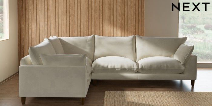 7.2.10 Noa Deep Relaxed Sit Large Corner Sofa - Left Hand Luxe Chenille Oyster High Leg - Mid | Made Click here to use our website with more accessibility support, for example screen readers