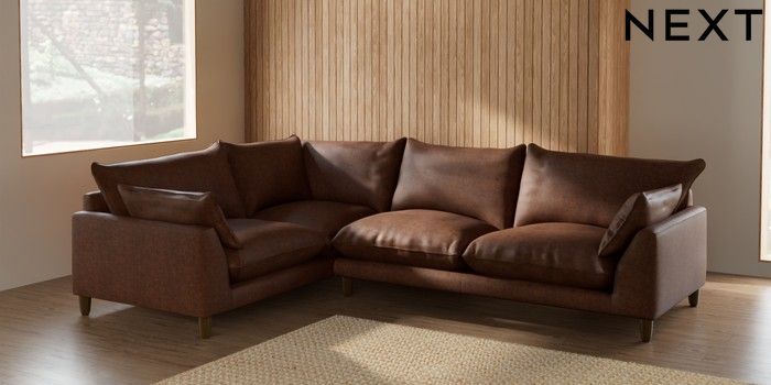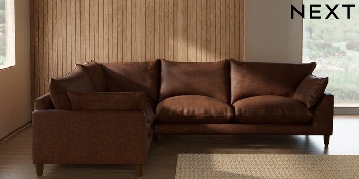 7.2.10 Noa Deep Relaxed Sit Large Corner Sofa - Left Hand Monza Faux Leather Easy Clean Chestnut Brown High Leg - Mid | Made Click here to use our website with more accessibility support, for example screen readers