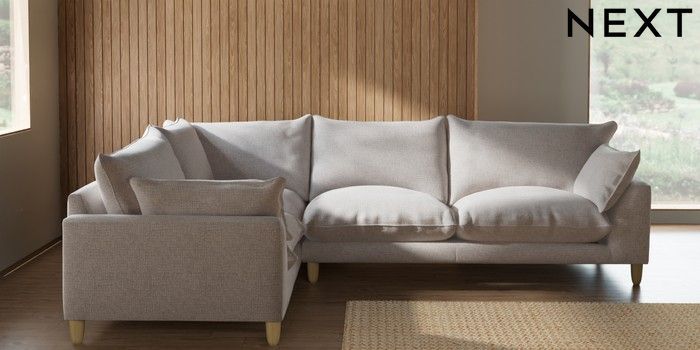 7.2.10 Noa Deep Relaxed Sit Large Corner Sofa - Left Hand Multi Weave Oyster High Leg - Light | Made Click here to use our website with more accessibility support, for example screen readers